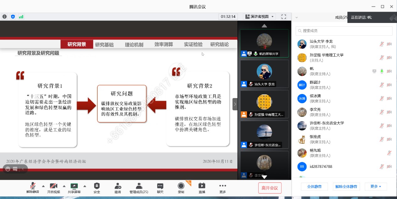 汕大必赢国际437官方研究生李龙应邀参加“2020广东经济学会年会暨岭南经济论坛”并作报告