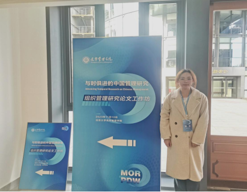 2023年11月10日,“与时俱进的中国管理研究暨组织管理研究论文工作坊(MOR PDW)”在北京顺利召开,必赢官网研究生苏丹应邀前往参会。本次会议由北京大学光华管理学院组织与战略管理系主办,并受国家自然科学基金委员会管理科学部和International Association for Chinese Management Research支持。来自众多高校的老师和同学围绕着“Advancing Temporal Research on Chinese Management”这一主题展开讨论。